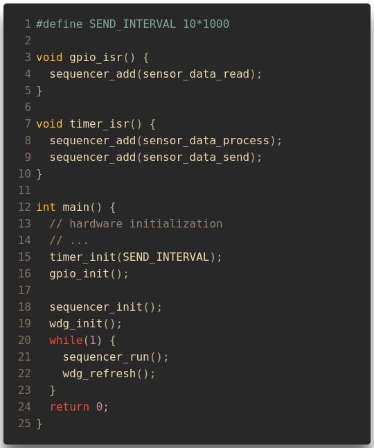 predetermined intervals thanks to the cooperative scheduler. The firmware